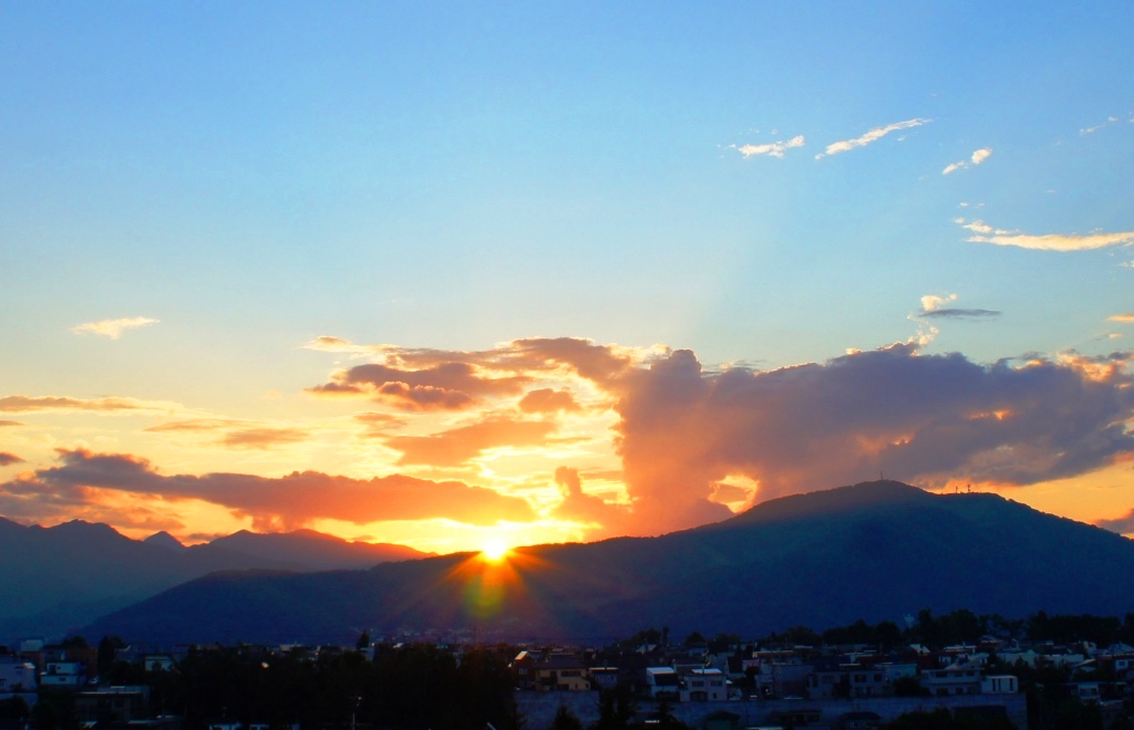 ★今日の夕陽。札幌の母なる山「藻岩山」です(右側)
