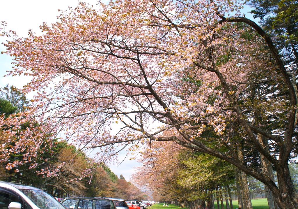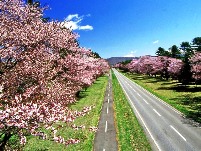 北海道の桜の名所として有名(百年の歴史)な、競走馬の牧場銀座としても全国にその名を知られた静内町にある「二十間道路」に行って来ました。札幌から高速道路と一般道をひた走って約2時間半~3時間のドライブ。日本一の桜並木とも称される直線全長8km(!)に、エゾヤマザクラなど3千本が並んでいる様は壮観!(だったんでしょうね。満開だった昨日までなら...)